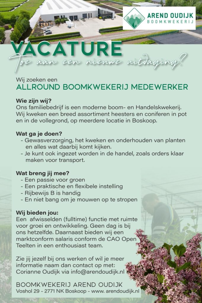 Arend Oudijk | Boomkwekerij is een eigentijdse en moderne boom- en handelskwekerij gelegen in Greenport Boskoop. Wij leveren een compleet assortiment van meer dan 1.000 soorten en maten heesters, bamboe en coniferen aan onze klanten in binnen- en buitenland.