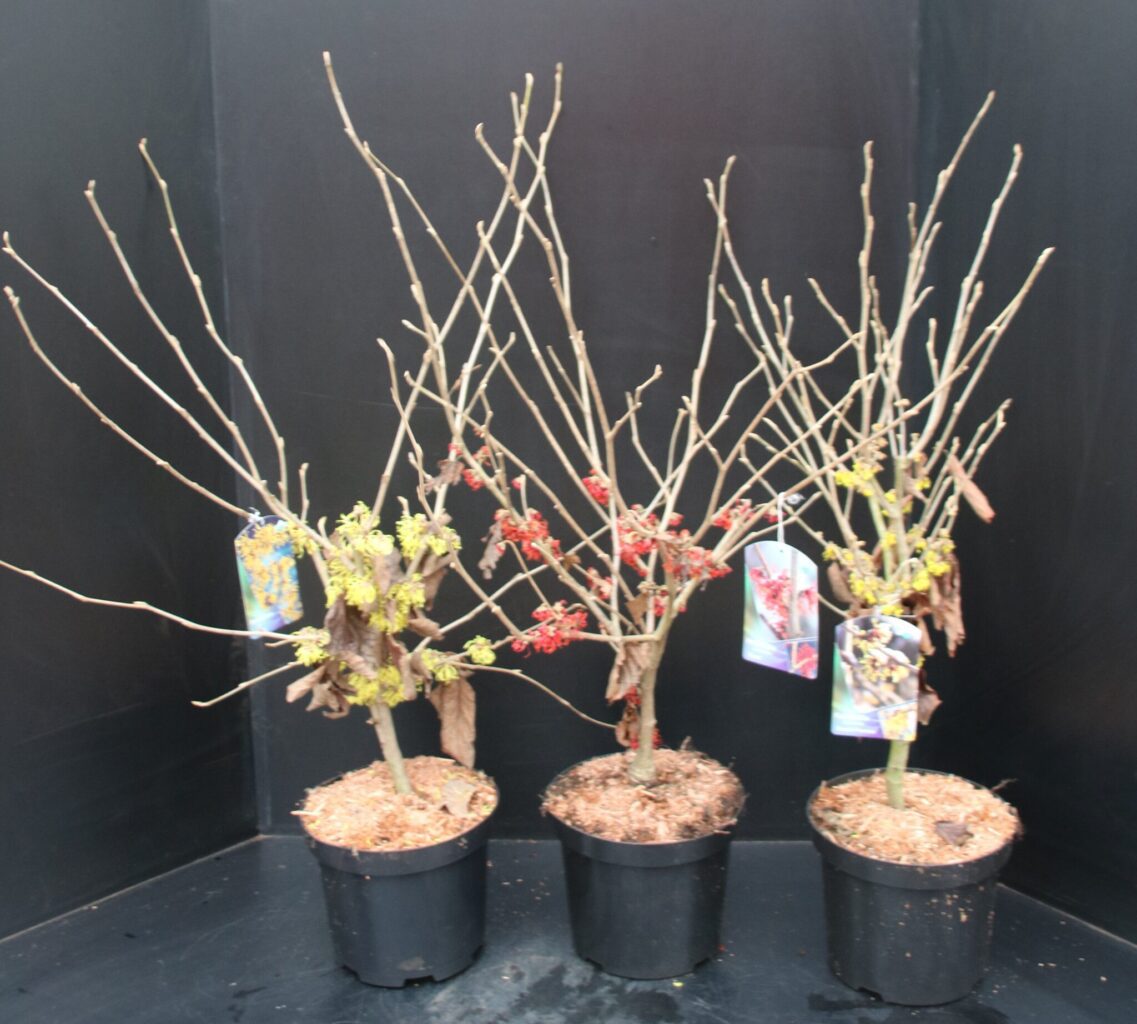 At Oudijk Nursery, we grow a wide range of winter-flowering shrubs, such as Hamamelis, Edgeworthia and Prunus.
